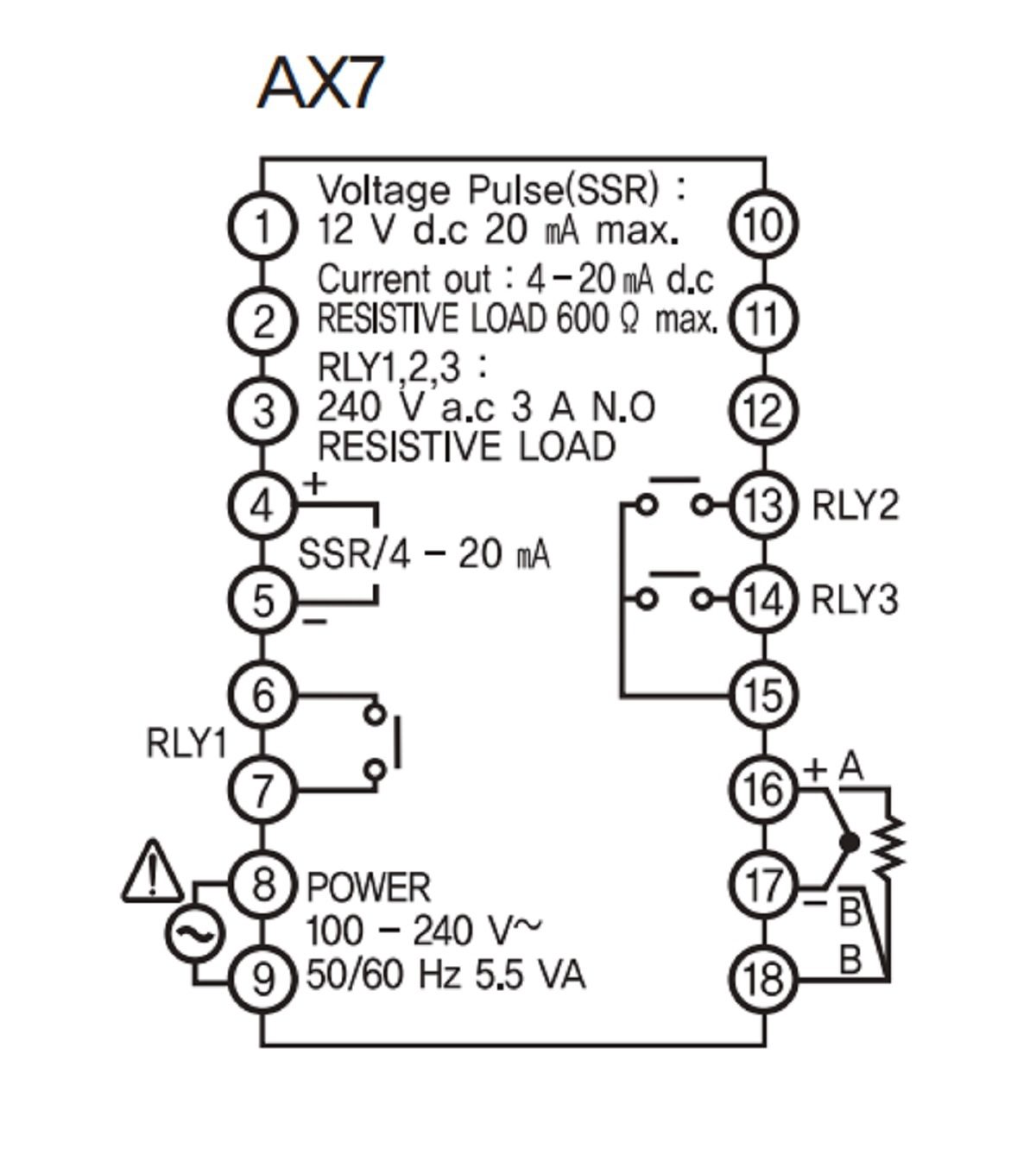 | • Salida de pluse de voltaje para ejecutar SSR [control proporcional de tiempo compartido (CYC)] • Voltaje más salida para ejecutar SSR [control de fase (PHR)] 0/12 V CC, voltaje de pulso (carga resistiva mínima 600O) |