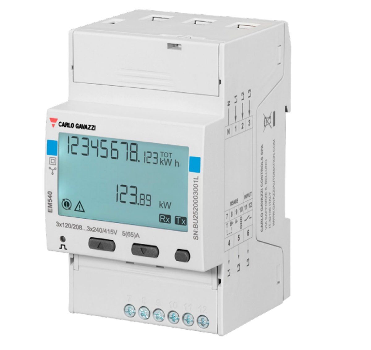 El EM540 es un analizador de energía de conexión directa, para sistemas bifásicos y trifásicos. Hasta 415 V entre Lineas.